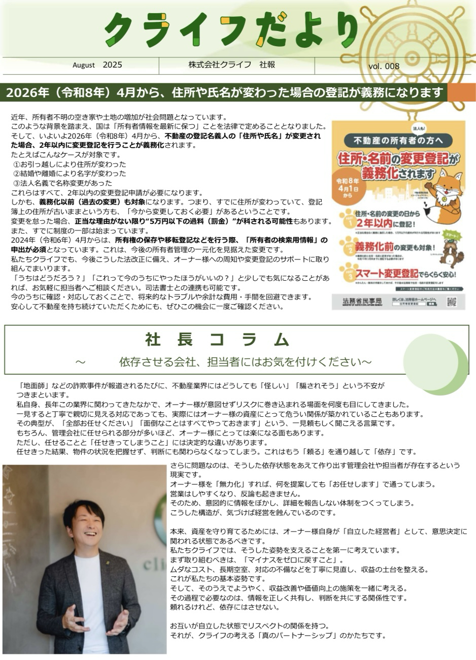 2025年8月号 住所や氏名が変わった場合の登記の義務化